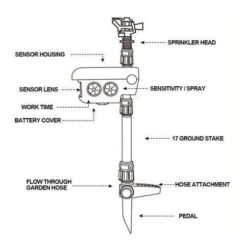 300-DEGREE COVERAGE: The sprinkler rotates 300 degrees, providing comprehensive coverage in most directions. It effectively protects your entire outdoor space from intruders or unwanted wildlife.